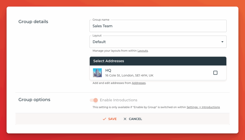 Once set up, addresses can be linked to Groups or individual People depending on what works best for your business.