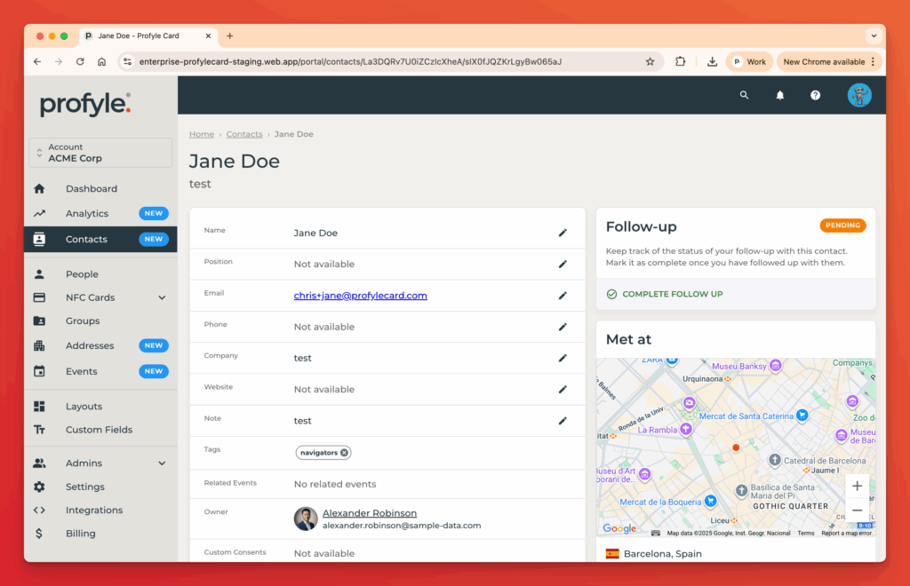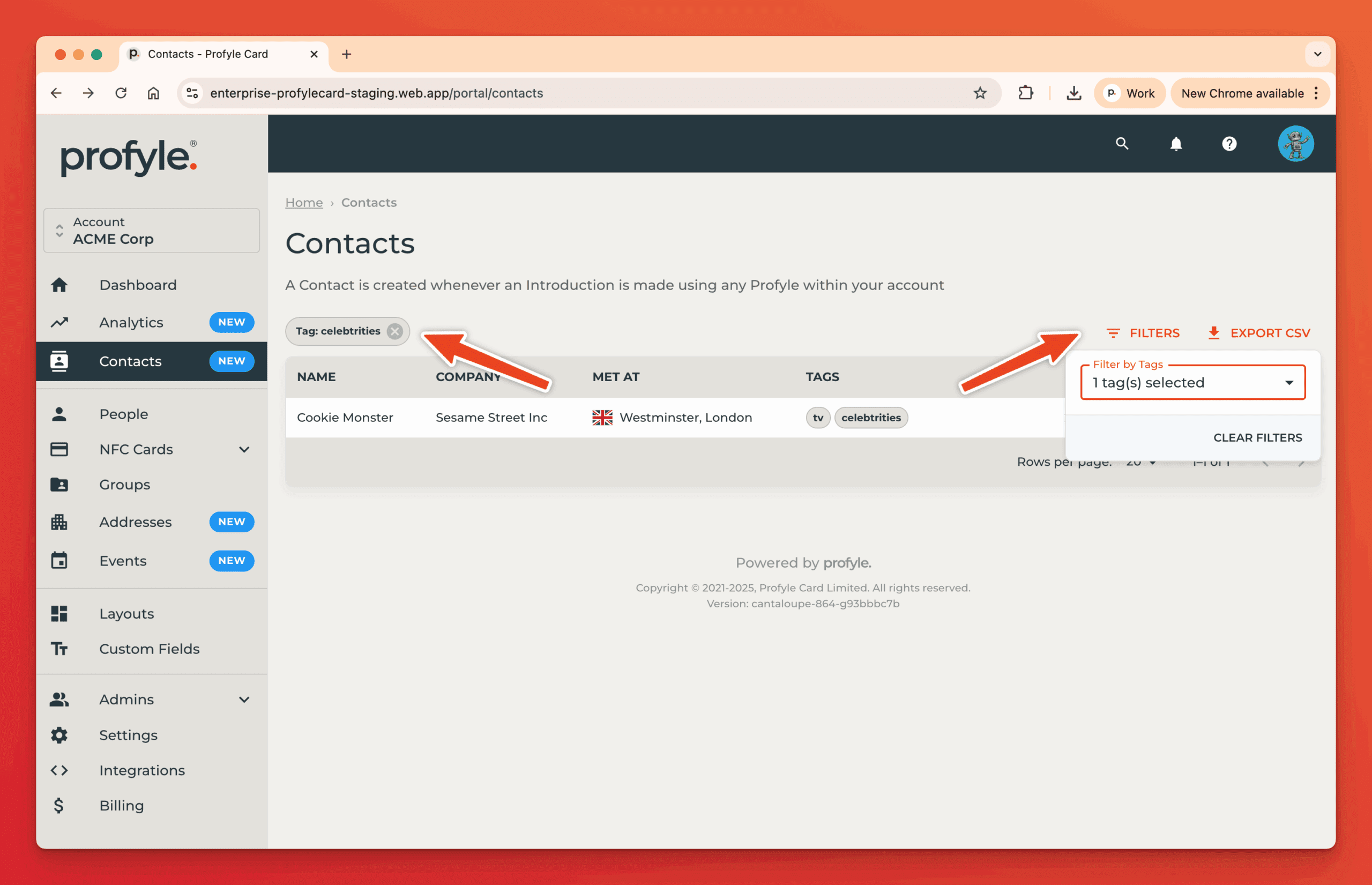 Contacts are created when any Profyle within your account completes an Introduction. This information is available to the Profyle owner and all portal admins.