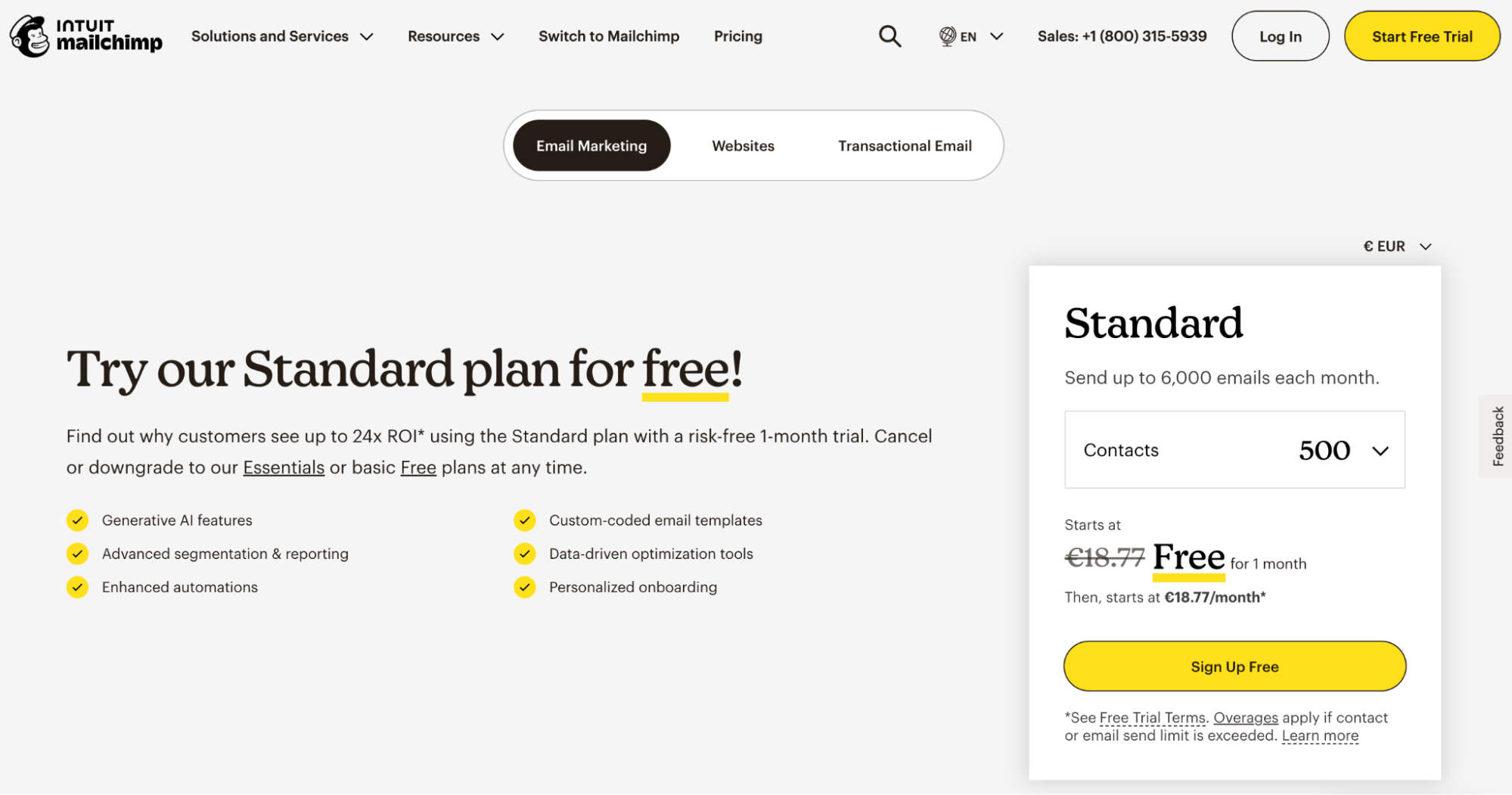 - What it does: Mailchimp’s free plan offers a solid starting point for email marketing. It allows you to send targeted email campaigns to your leads, keeping your brand top of mind.